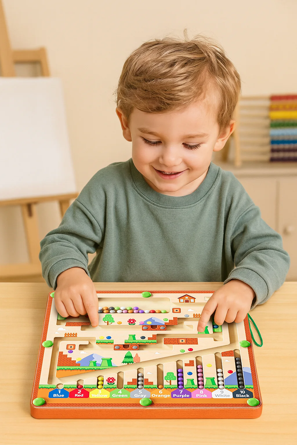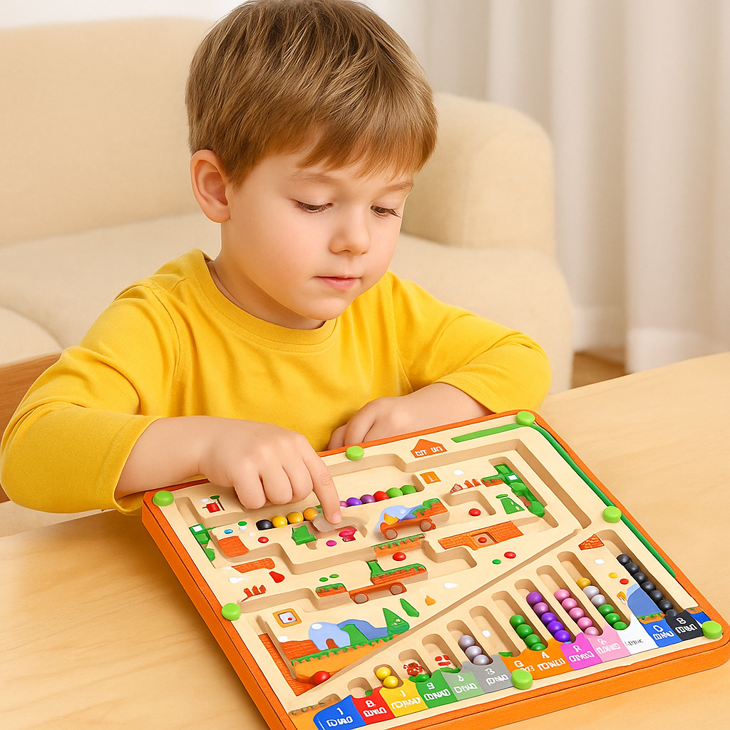 Struggling with short attention spans, screen dependency, or delayed motor skills? These aren’t just phases—they’re signs your child needs more meaningful, hands-on play. Our interactive magnetic board is designed to support early cognitive growth. It starts by engaging young minds with color and number recognition, then builds hand-eye coordination through guided movement. Finally, it nurtures focus, patience, and independent problem-solving—all in a screen-free, safe, and joyful way.