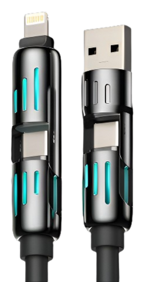 بفضل نهايات الكابل المعززة، تم تصميم هذا الكابل متعدد الاستخدامات (4 في 1) لتحمل البلى اليومي، مما يجعله خيارًا موثوقًا لأي حالة شحن.