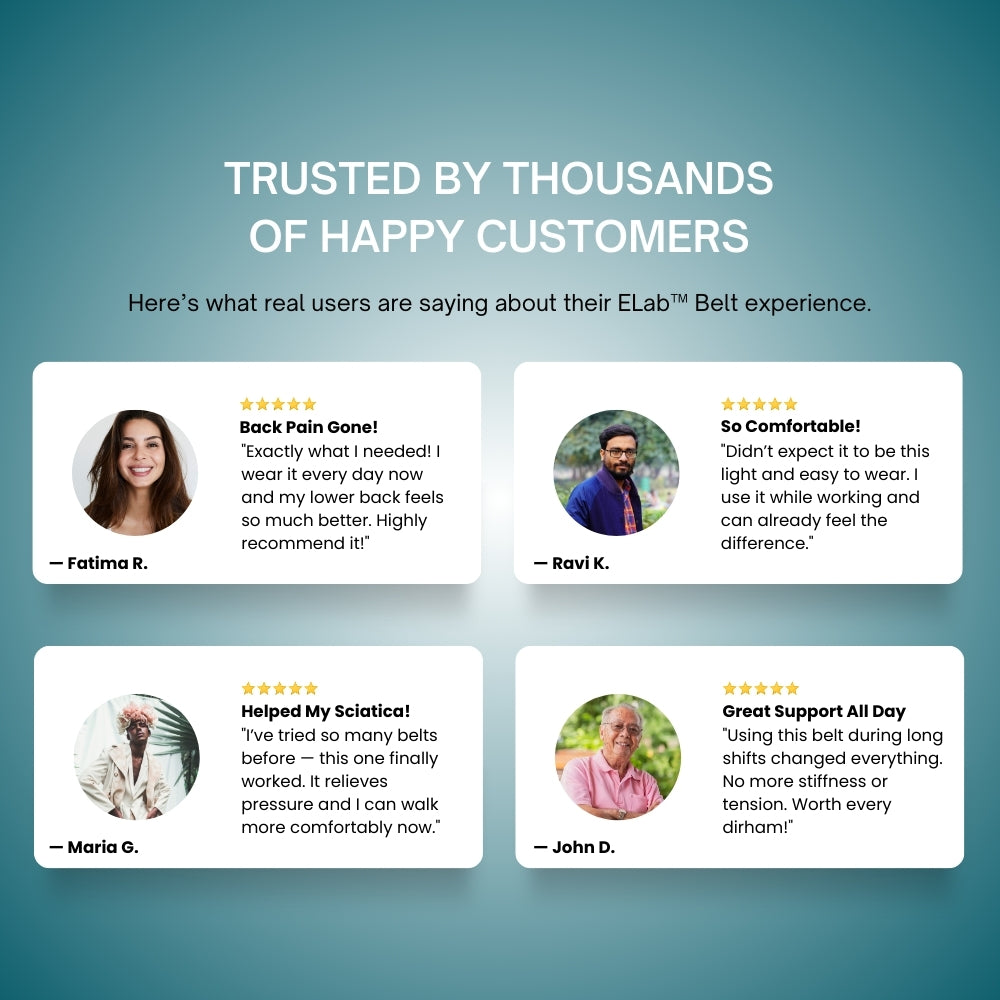 أفاد 100% من المستخدمين الذين يعانون من آلام الظهر، أو عرق النسا، أو مشاكل المفصل العجزي الحرقفي بتحسن فوري بعد جلستهم الأولى.
